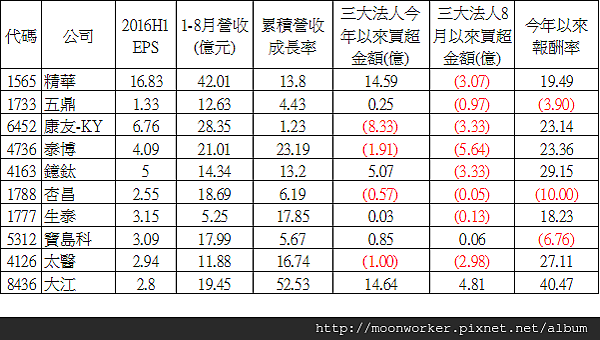 4.修正:2016年1月-8月累積營收年增率>10%,表示該公司仍具備業績成長動能。