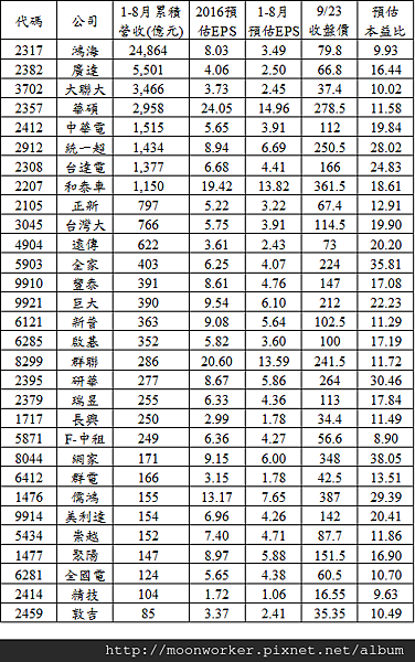 至於台股上市公司合併營收表現方面,11月上市公司整體合併營收達2.68兆元,月增率為4.7%,年增率則為3.9%,創下四年以來單月合併營收的高峰。(通常講到創高峰,就得擔心隔年11月可能會呈現衰退,因為基期墊高了)。由於去年12合併營收為三年最低,因此預估在目前的經濟回穩下,12月營收應該可以持續出現年增長情況,加上美國即將升息,產油國家達成減產協議進而推升油價,將進一步帶動許多原物料上漲,在預期漲價心理下,12月合併營收亦可能超過11月的2.68兆元。